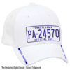 This hat design uses a HTV transfer process on the visor and also includes a full-color sublimated flock patch.  Each product is made by hand and not on a machine.